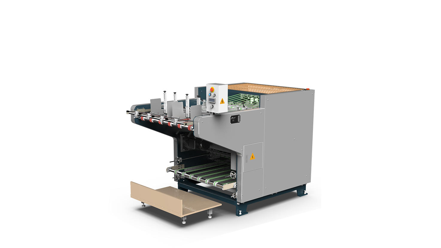 2. 采用皮帶摩擦送紙,可碼垛放料;