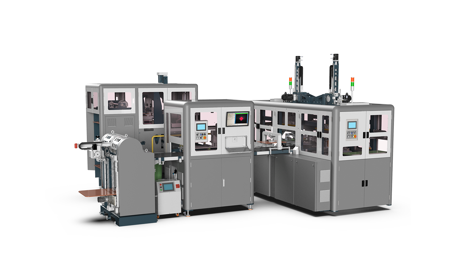 折耳和折入成型自動完成。 在飛達、過膠和輸送帶使用知名品牌伺服驅動,可無極變速,高